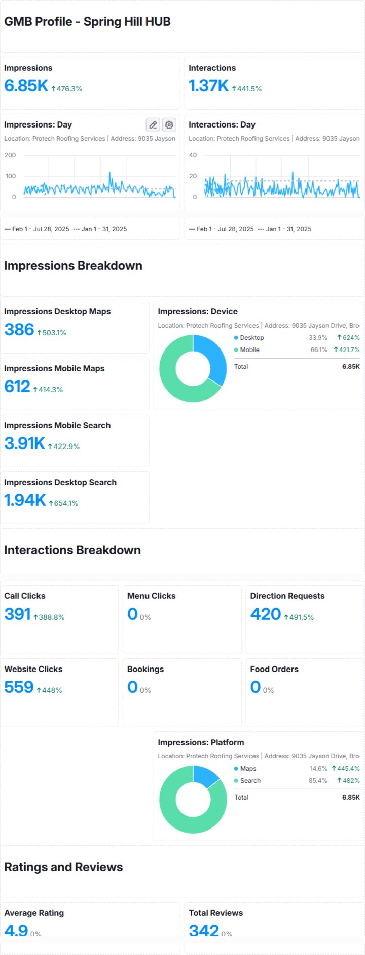 +476% in views and 441% more interactions on Google! Protech skyrocketed in local search with our strategy.